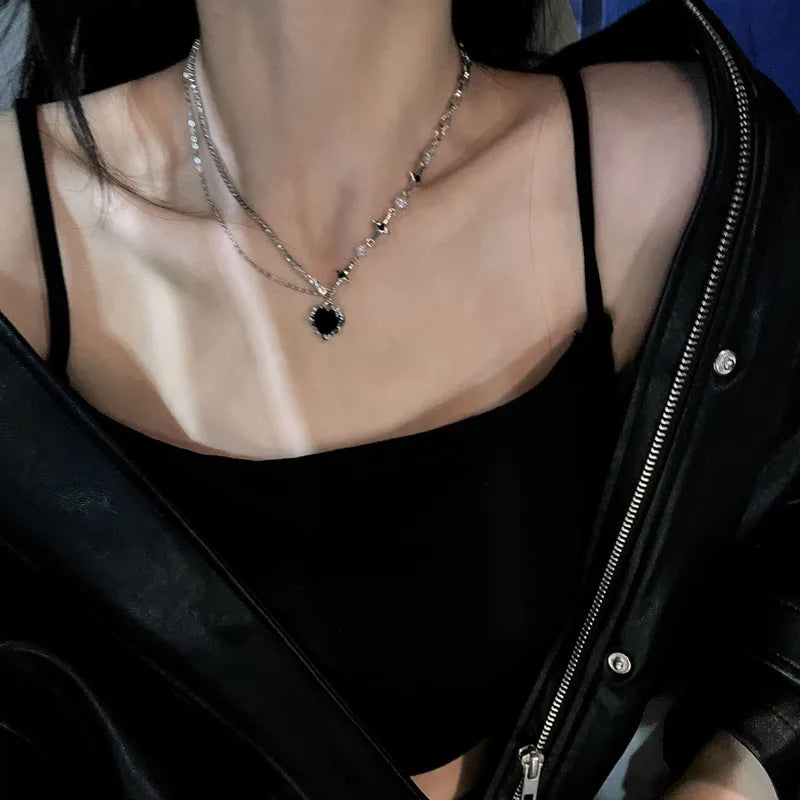This purple crystal heart pendant necklace pairs well with other edgy accessories, such as studded bracelets or layered chokers. For an edgy, grunge-inspired look, combine it with a leather jacket and dark makeup. Alternatively, for a softer yet still bold statement, wear it with a simple black dress or oversized sweater for contrast.